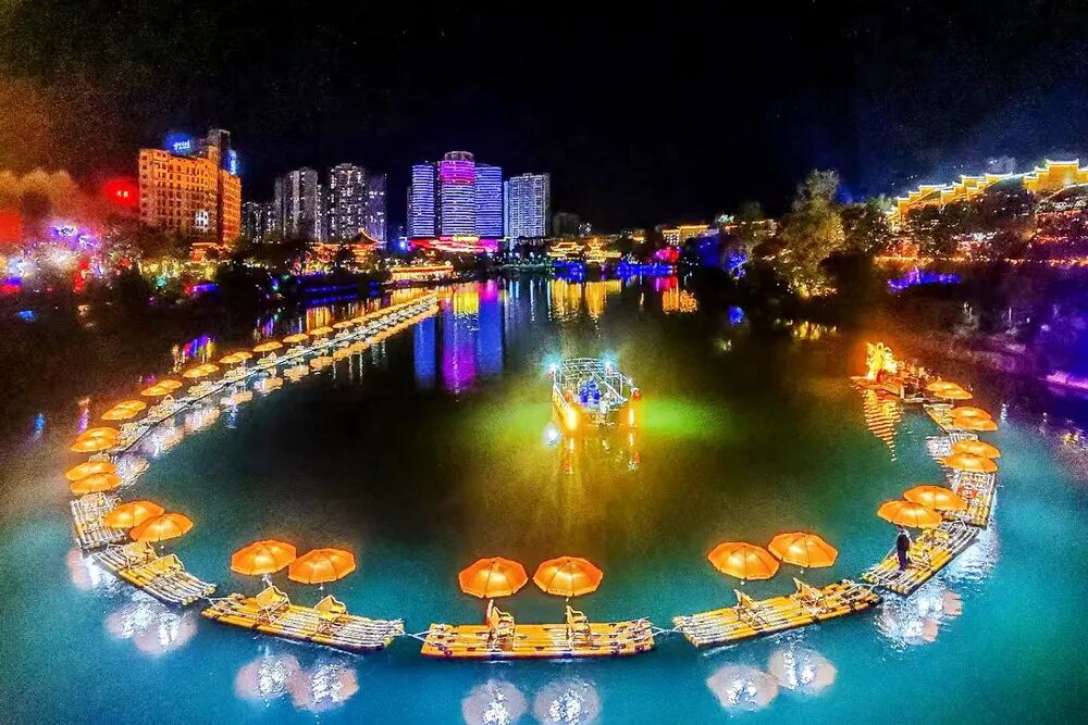 中南门历史文化旅游区以“夜间经济+非遗文化”为核心,开展丰富多彩的文化活动来提升古城的大众视野和经济发展水平。十月举行的千人土家摆手舞表演、千人非遗巡游、特色节目表演、非遗技能展示、少儿艺术节展演活动等活动有力地提升了中南门的文化价值和非遗的魅力。业态创新为中南门注入了新动力,中南门历史文化旅游区精准把握消费趋势,努力打造各式各样的打卡地,沿江而设的音乐酒馆、露天酒吧、竹筏夜游项目让游客在桨声灯影中饱览古城的夜景,感受古城夜晚的文化。汉服体验馆与古城相映成趣,将古城的传统与时尚的碰撞让古城消费场景不断升级。