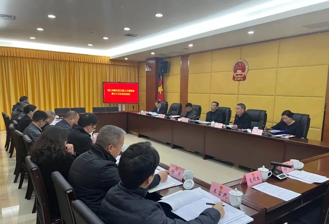 3月29日,区人大常委会召开第三十三次主任会议。区人大常委会主任熊放鸣主持会议,区人大常委会副主任任树生、代金堂、杨鸿雁、代鹏出席会议。