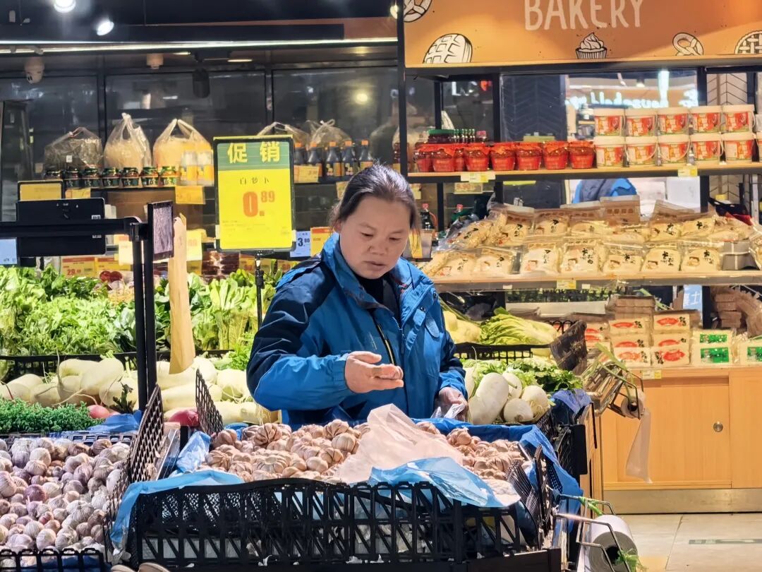 记者在城区天天见超市看到,红色已成为氛围布置的主色调。对联、大红灯笼、“福”字、红包等春节饰品摆放在显眼位置,处处洋溢着祥和欢乐的节日气息。货架上,米面粮油、零食饮料、日用百货等商品整齐陈列,新鲜果蔬种类丰富、供应充足。据了解,该超市今年根据市场需求调整了商品种类,囤货量也较往年有所增加。目前,已有市民陆续前来选购年货。