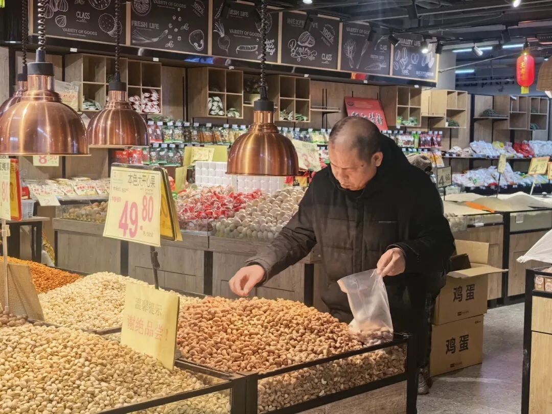 在黔兴隆超市,货架上各类年货储备充足、琳琅满目。为全方位满足市民的购物需求,超市不仅备齐了日常所需的粮油副食、生鲜果蔬,还推出了坚果礼盒、腊味礼包、水果组合等多款精选年货礼盒,品类丰富、选择多样。无论是自家备货,还是走亲访友赠礼,市民都能在这里一次购齐,充分感受到货源充沛、供应稳妥的节前市场氛围。