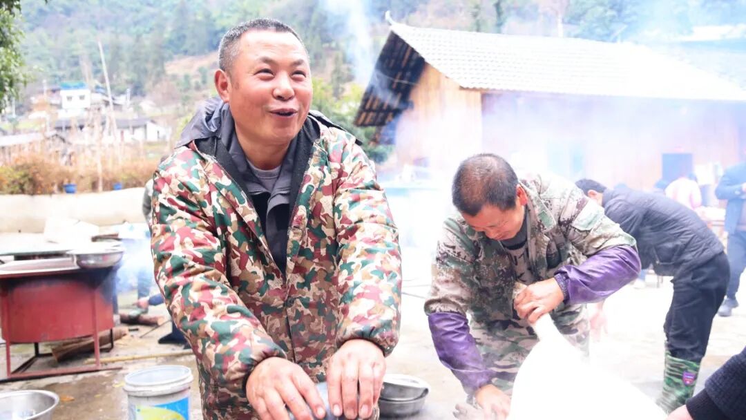 临近春节,土猪肉成为市场抢手货,唐秀明家出栏的生猪很快销售一空。定制腊肉订单接连不断,不少客户提前支付定金,今年的收入很可观。谈及如今的好日子,唐秀明满脸笑意、言语朴实:“村里面给我发了几头猪苗,今年有一个大丰收年,每头猪有300多斤,我就喊父老乡亲过来,打个平伙。今天好多人来买了新鲜猪肉,我又熏了腊肉卖,今年收入还不错,有几万块钱。”